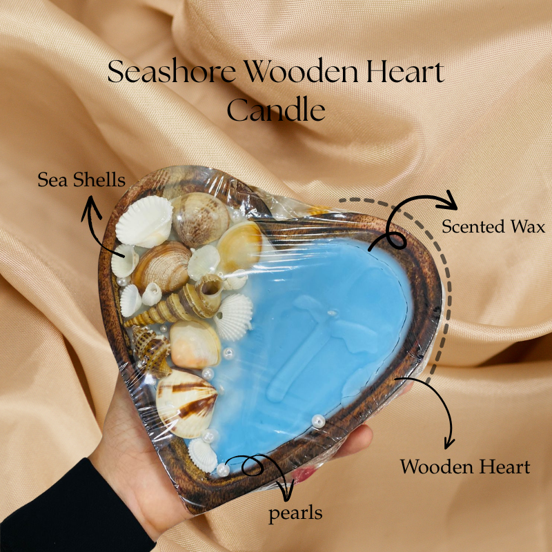 Bring the beach vibes home with our Seashore Wooden Heart Candle, handcrafted with real seashells, pearls, and soothing scented wax. Perfect for gifting, relaxation, and elegant home décor.