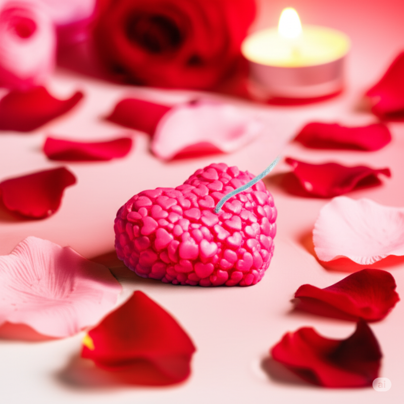 A romantic pink heart candle crafted with a pattern of tiny hearts. Measuring 2.5” wide and 2” high, and weighing 53g — perfect for date nights, proposals, or gifting.