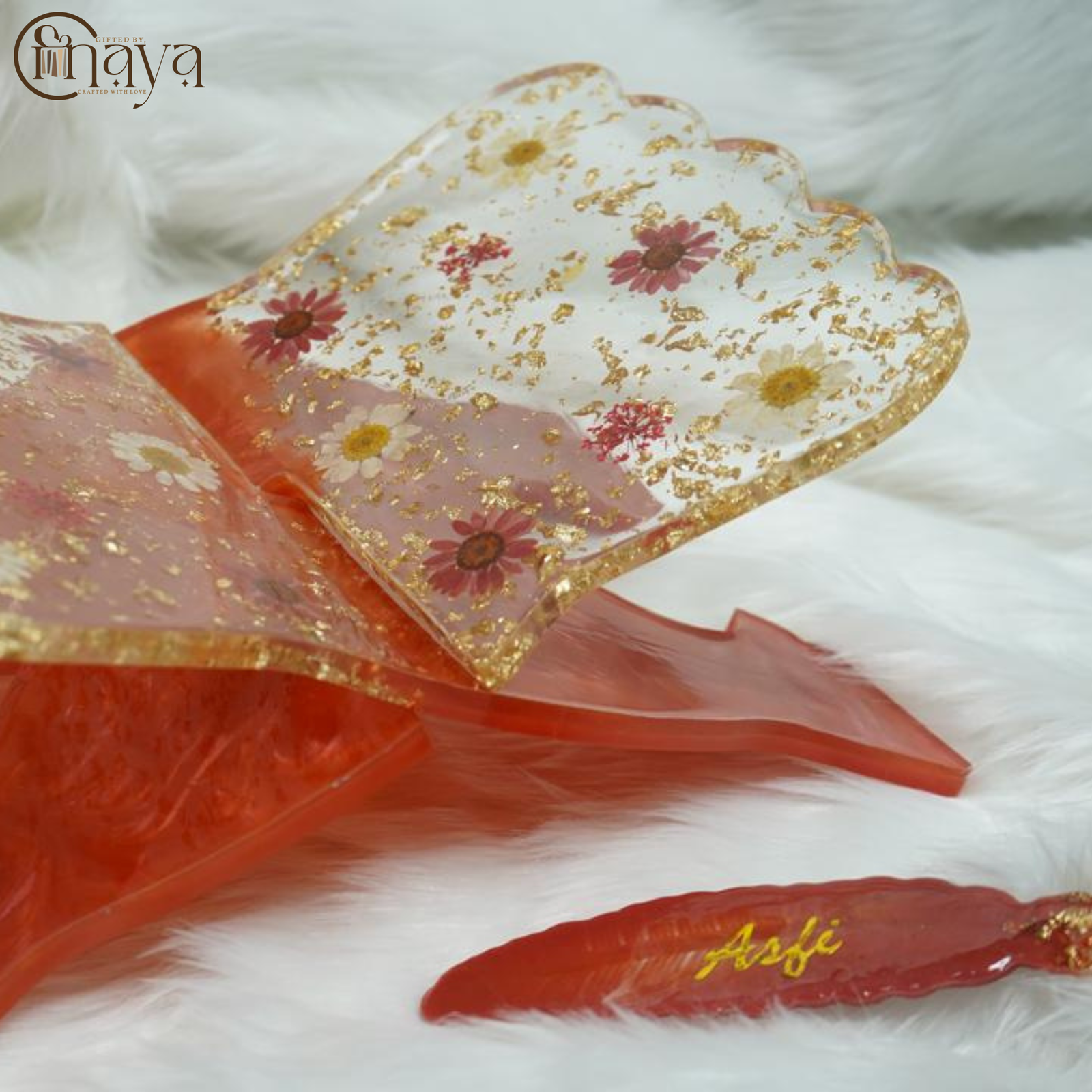 Resin Bookmark + Resin Rehal Duo Set (Handmade Floral Gold Foil Edition)